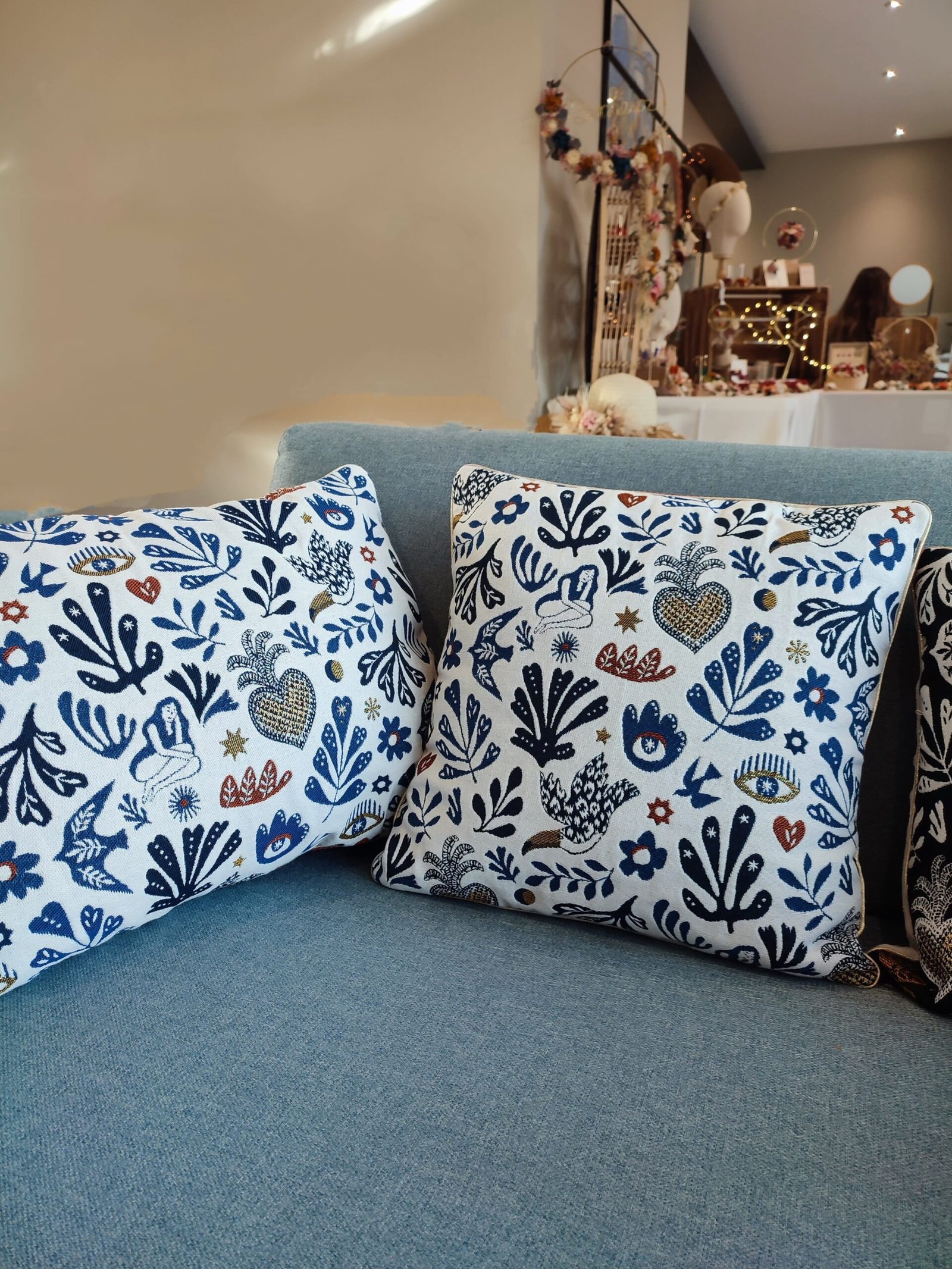 Coussin jacquard français collection Mage bleu – Fabrication artisanale